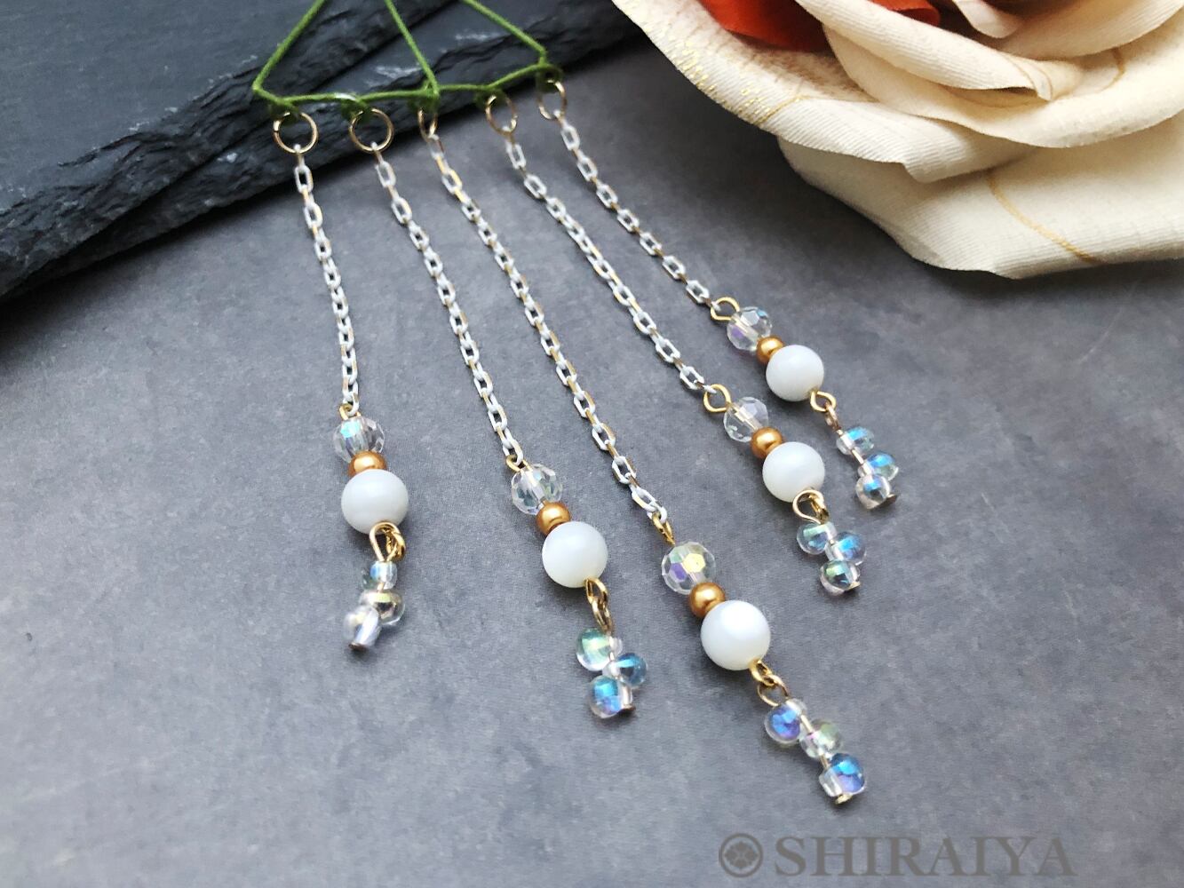 針金の茎になっておりますので、ヘアピンなどでお好きな箇所にお付け下さい。