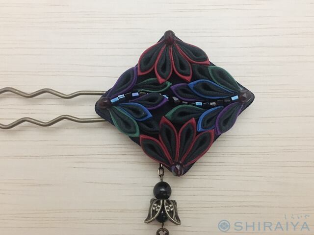 菱形の土台と原色の色合いが、落ち着いた中にも華やかさを演出します。